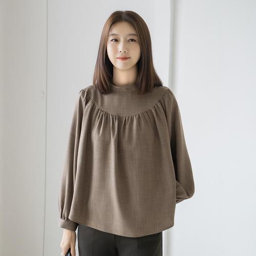 [벨리시앙](의정부점)이중 스판 쉬폰 하이넥 블라우스_BL4333