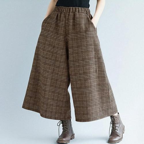 [퀸이즈][퀸이즈] 빅사이즈 솔디 체크 포인트 허리밴딩 모직 와이드팬츠