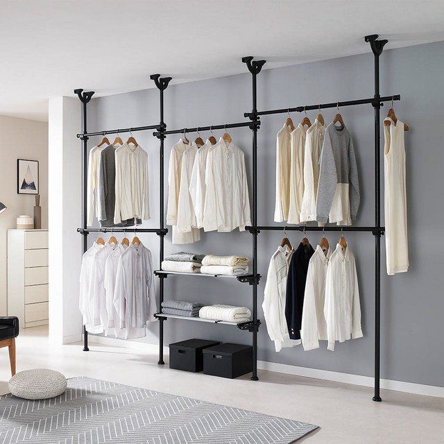 [오늘 출발][판매량1위] 2~6단 국산 이지온 행거 모음 코너형 드레스룸 고정식 커튼 옷걸이