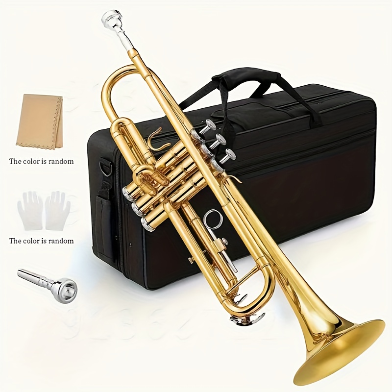 TEMU 프로페셔널 Bb 트럼펫, 골든 퍼포머 브라스 트럼펫 (케이스, 장갑, 7C 마우스피스 포함), 쉘 키 트럼펫