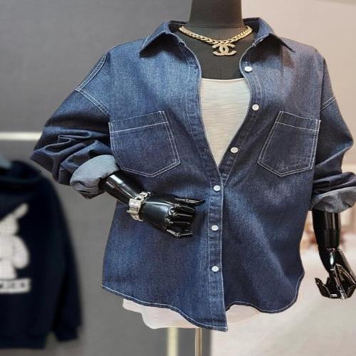 [HYIJBWDT_4B]셔츠 여자야상자켓 심플 데님 루즈핏 긴팔