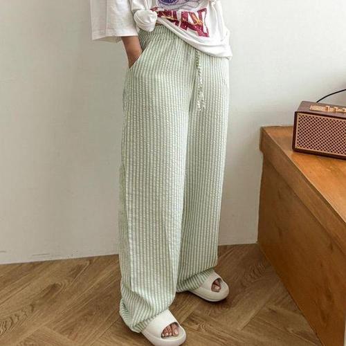 여성 느슨한 봄 여름 2025 새로운 높은 허리 넓은 다리 슬림 캐주얼 바지 한국 패션 트렌드 여성 정장 스트레이트 바지