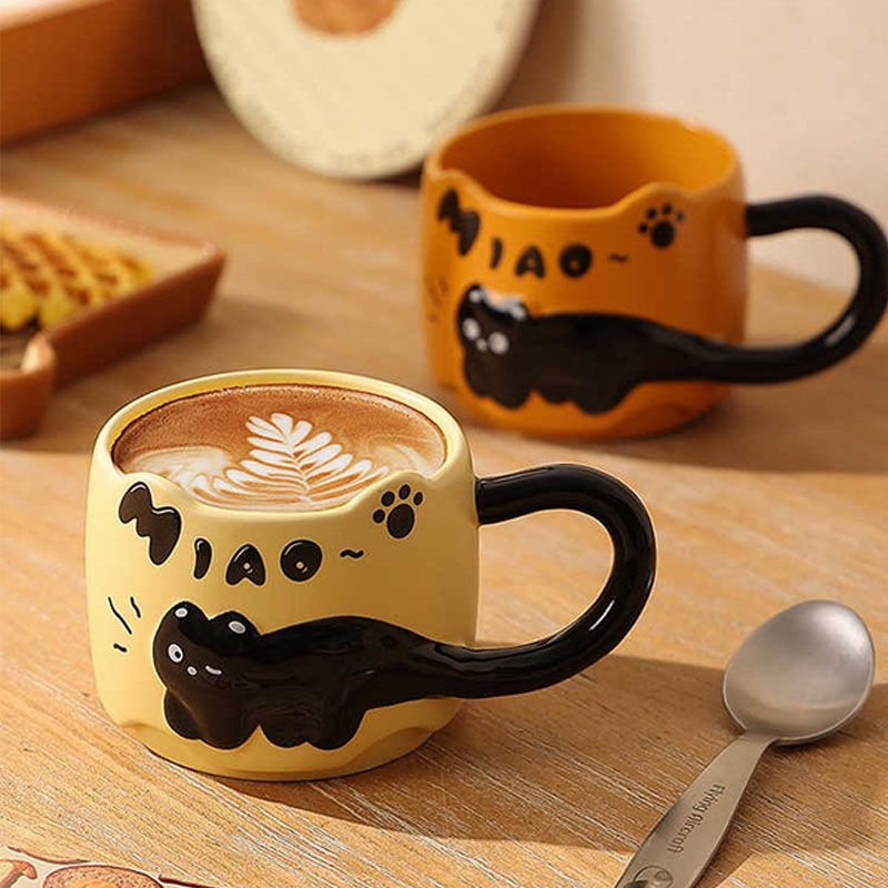 [해외] 북유럽 귀여운 고양이 도자기 커피잔 쌓을수있는 머그컵 집들이 선물 4P