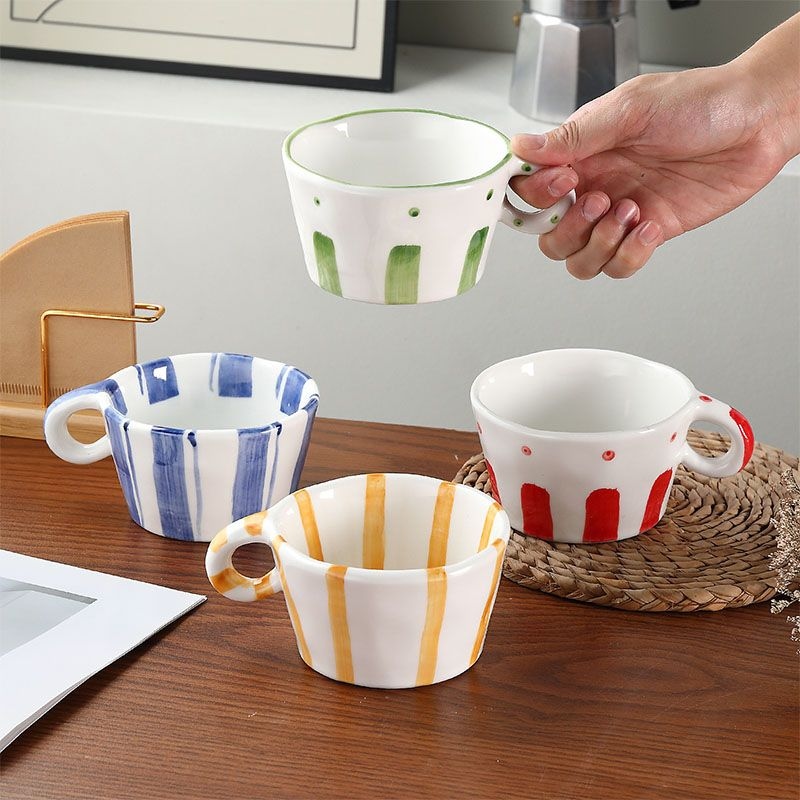 [해외] 북유럽 모던 줄무늬 세라믹 머그컵 홈카페 머그잔 커피잔 오브제머그 4colors