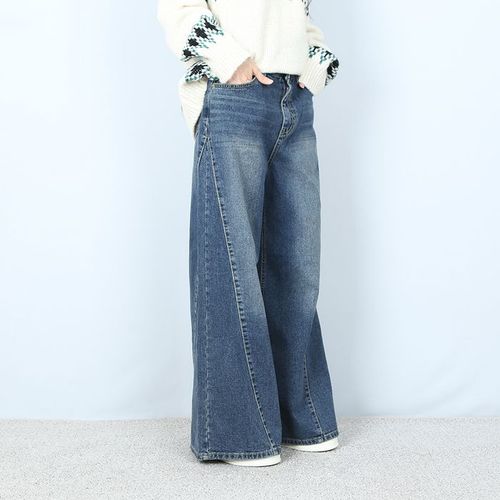 파라노말샵 / (얇기모) 진청 워싱 사선 절개 와이드 팬츠 (파라노말