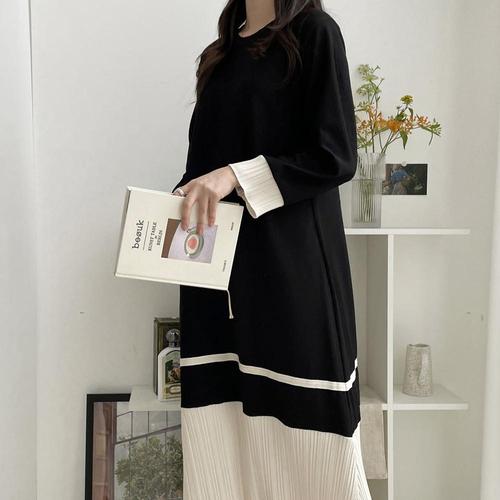 [샵앤][샵앤] 국산 여성 데일리 타이배색 임부복 롱원피스 LL-WDR-4851-블랙