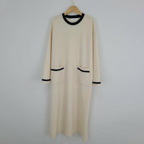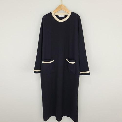 [샵앤][샵앤] 국산 여성 라운드 포켓배색 임부복 롱원피스 LL-WDR-4848-네이비