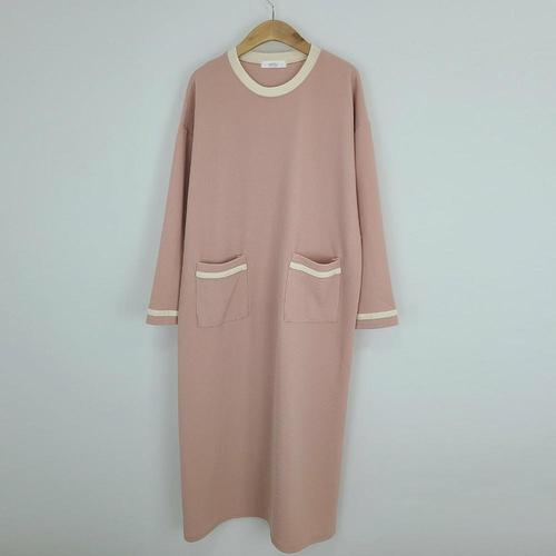 [샵앤][샵앤] 국산 여성 라운드 포켓배색 임부복 롱원피스 LL-WDR-4848-핑크