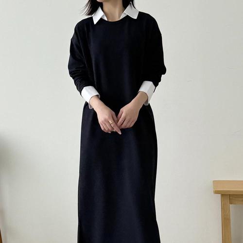 [샵앤][샵앤] 국산 배색 셔츠카라 오버핏 임부복 롱원피스 LL-WDR-4847-블랙