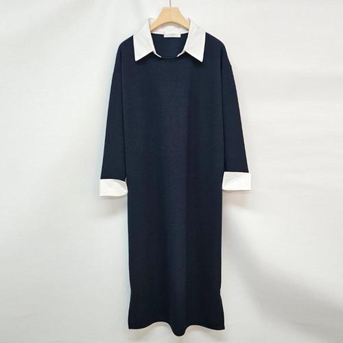 [샵앤][샵앤] 국산 배색 셔츠카라 오버핏 임부복 롱원피스 LL-WDR-4847-네이비