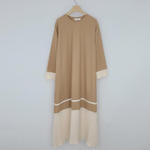 [샵앤][샵앤] 국산 여성 라운드 배색주름 임부복 롱원피스 LL-WDR-4852-베이지