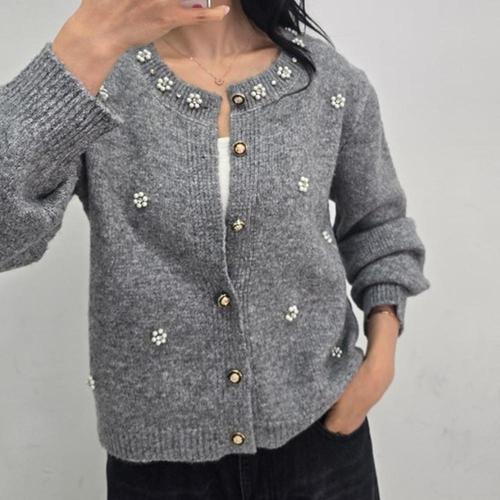 [샵앤][샵앤] 여성 라운드 진주장식 입체단추 긴팔 니트 가디건 SIU-WCD-4943-그레이