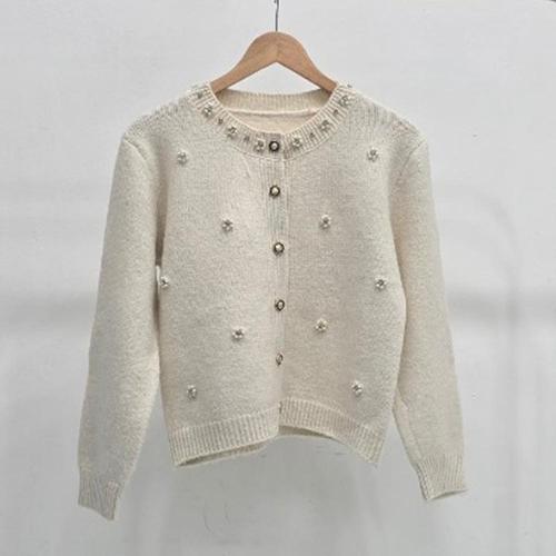 [샵앤][샵앤] 여성 라운드 진주장식 입체단추 긴팔 니트 가디건 SIU-WCD-4943-아이보리