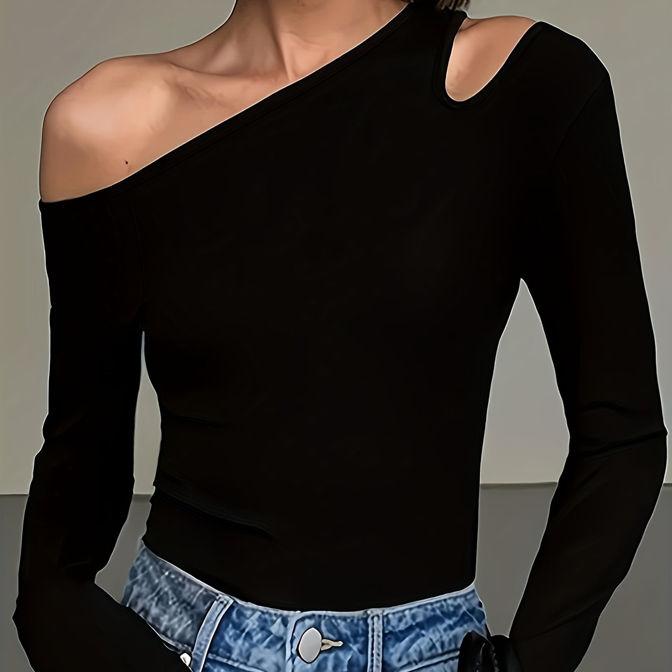 TEMU 여성용 신상 솔리드 컬러 슬림핏 오프숄더 롱슬리브 섹시 컷아웃 티셔츠