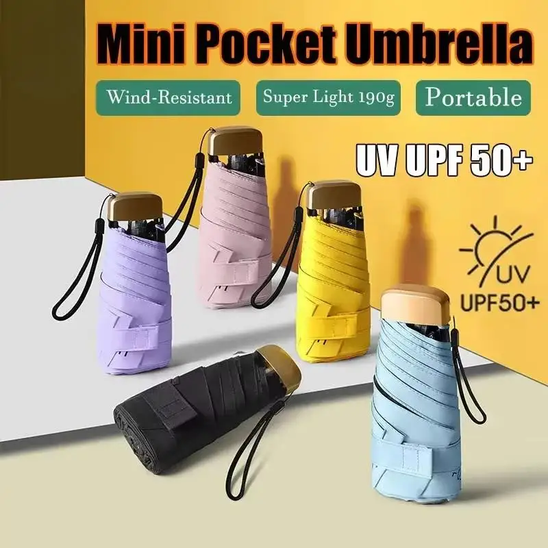 휴대용 미니 포켓 우산, 소형 여행 비 파라솔, 비닐 접이식 태양 쉐이드 방수 우산, UPF50 + 캡슐 우산