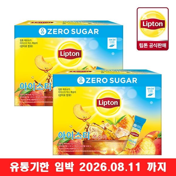 [유통기한 임박] 립톤 제로슈가 아이스티 복숭아 5g 60T 2개 (총 120T)