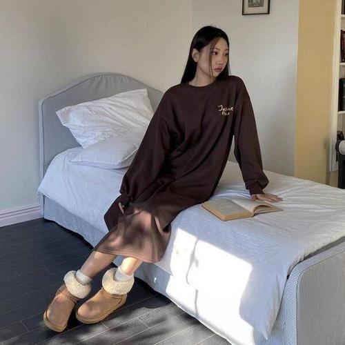 [미미야]내지니 자스민 레터링 박시 롱 기모 원피스