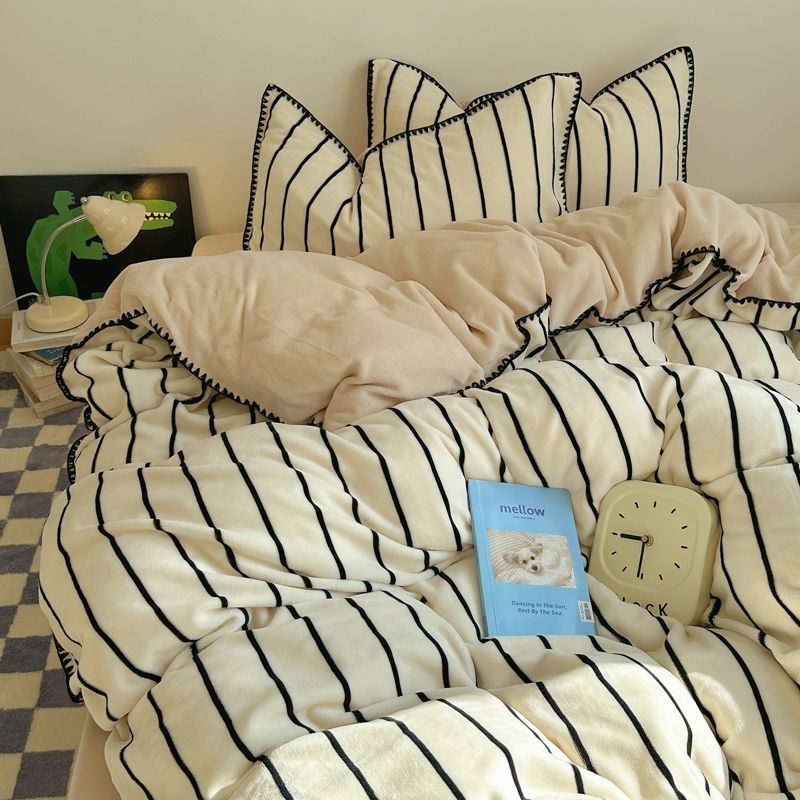 [해외] HAUZ 스티치 스트라이프 침구세트 따뜻한 극세사 이불세트