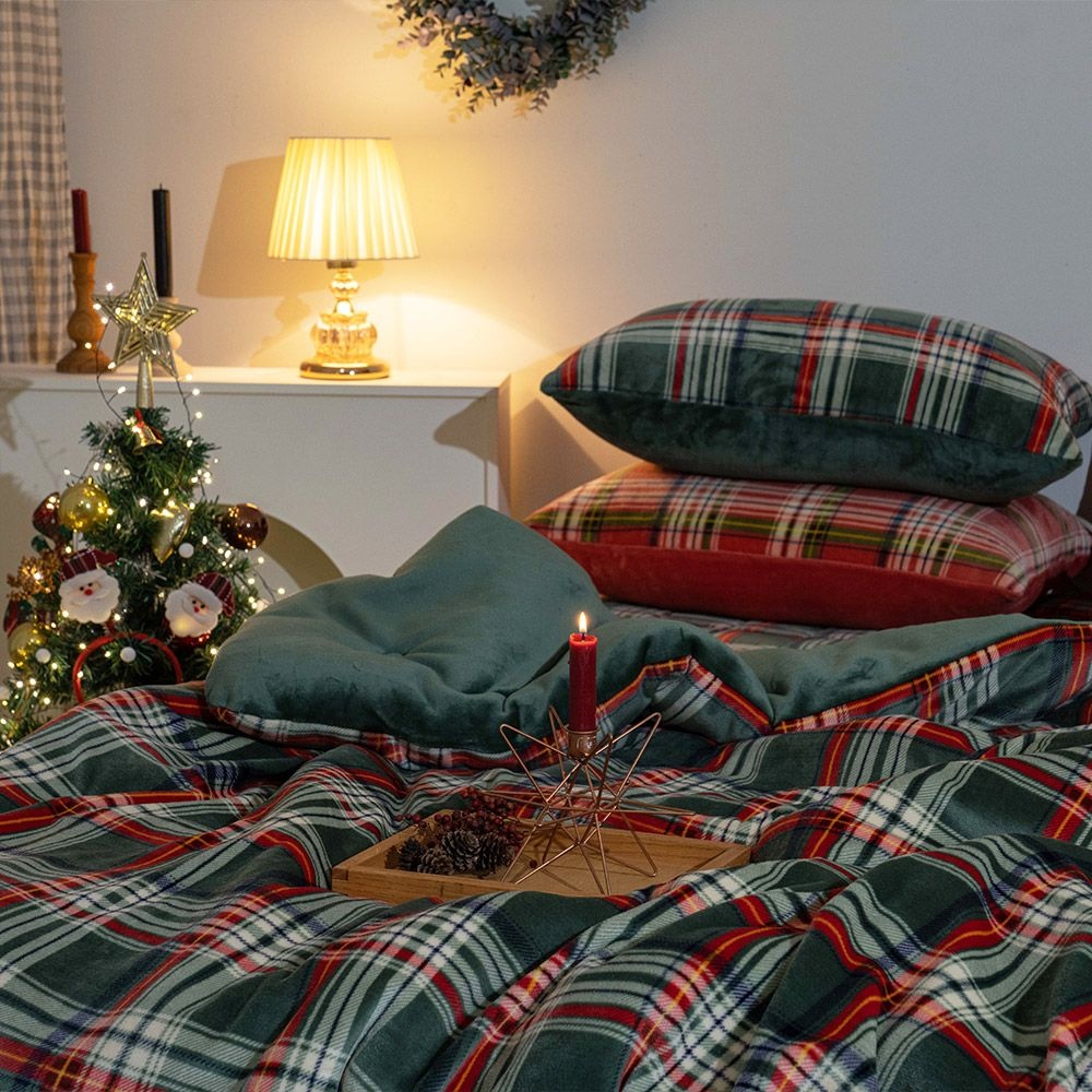 먼지없는 크리스마스 체크 극세사 겨울 이불세트