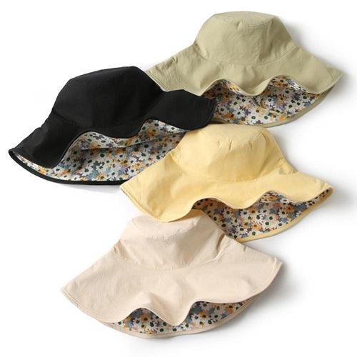 키밍 여성 플라워 양면 벙거지 모자 자외선차단 여행 WA38B96