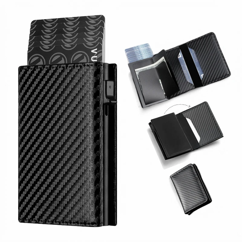 남성용 탄소 섬유 신용 카드 홀더 지갑 RFID 스마트 메탈 얇은 슬림 팝업 미니멀리스트 소형 블랙 지갑 메탈 케이스