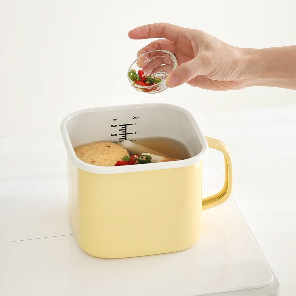 대용량 직화 인덕션 법랑 핸들 저장용기 2.2L (뚜껑포함) 2colors 캠핑 라면 냄비