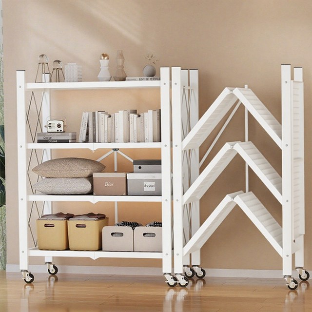 다용도 선반 원터치 폴딩 4단 접이식 선반 모던 수납 공간활용 베이킹 조립식 식료품 베란다 캐스터 조리대