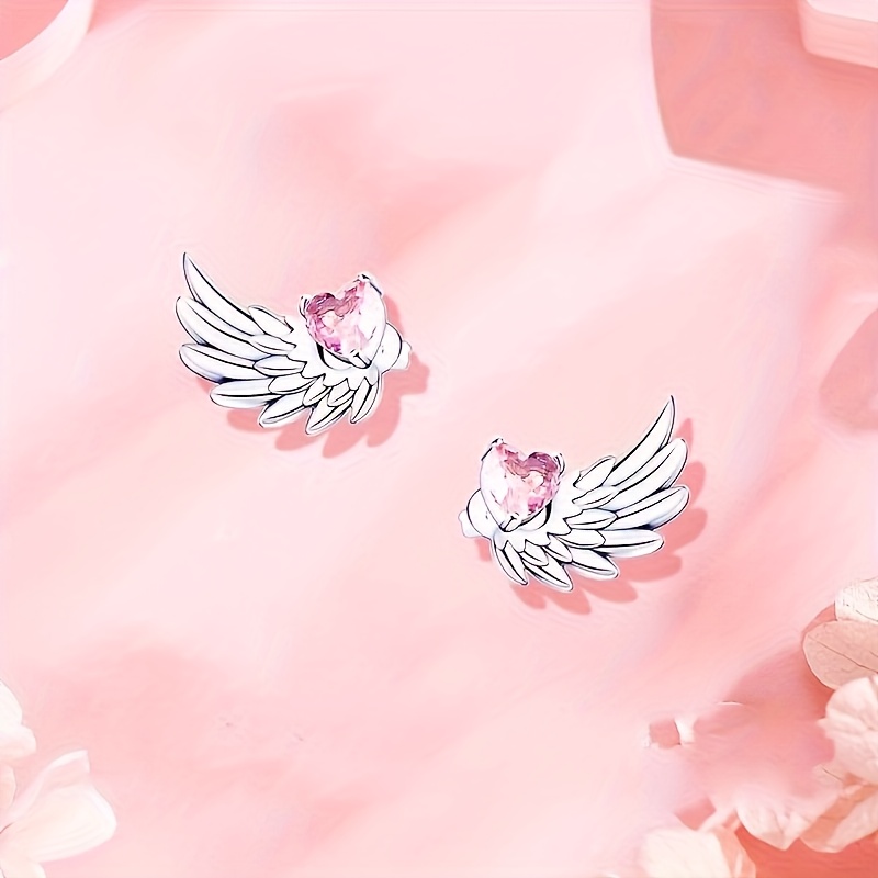 TEMU 날개가 달린 하트 모양 귀걸이 한 쌍, 합성 지르코니아 세트, 휴일 기념 또는 발렌타인데이 선물로 완벽