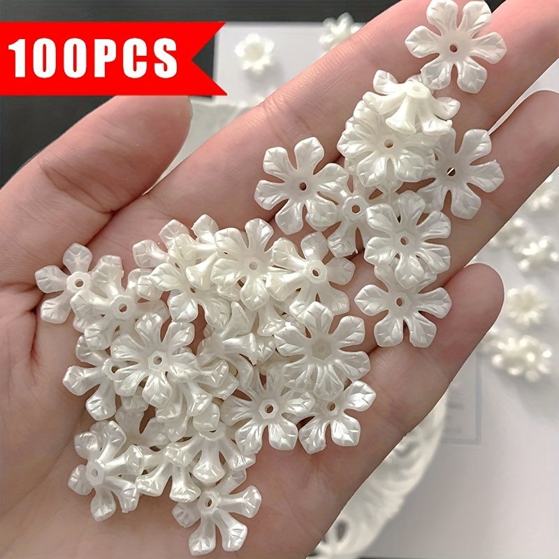 TEMU 100개 진주 아크릴 꽃 비즈, 18mm DIY 쥬얼리 만들기 재료 팔찌, 목걸이, 펜던트
