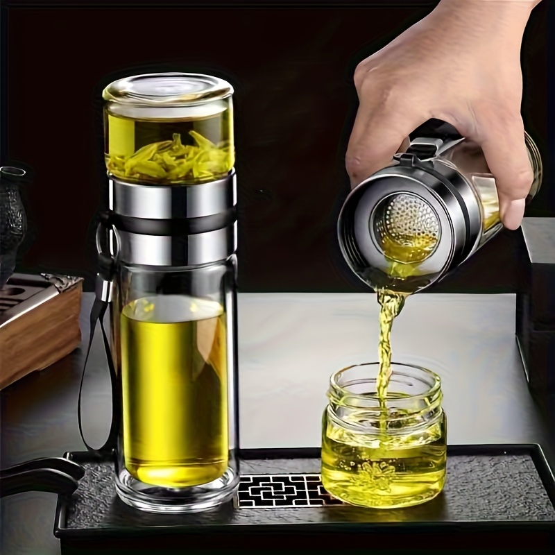 TEMU 차 분리 유리 컵 (차 추출용), 이중 레이어 두꺼운 내열 휴대용 물병, 차 잎 분리 기능성 차 추출 컵 - 사무실, 여행, 캠핑 및 가정용 필수품, 고급 보온병, 야외 활동에 적합