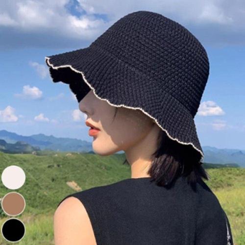 [룽스]여자 여성 버킷햇 밀짚모자 여름 제주 배색