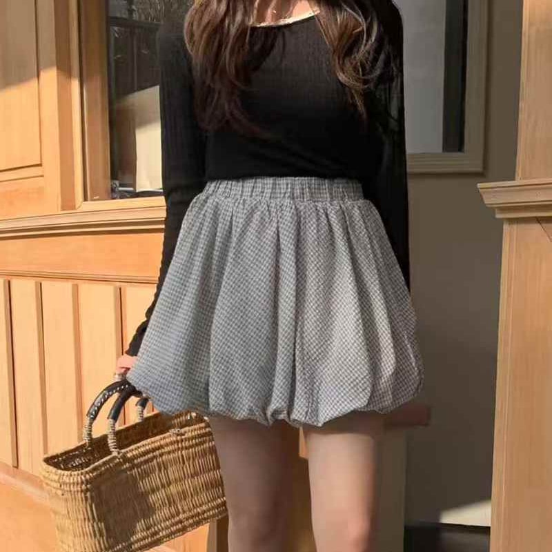 1+1 벌룬스커트 여성 면 밴딩 미니 스커트