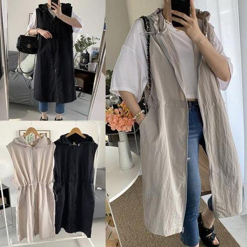 춘추 여성 민소매 트렌치코트 롱 조끼 집업 베스트 빅사이즈 점퍼 루즈핏 자켓