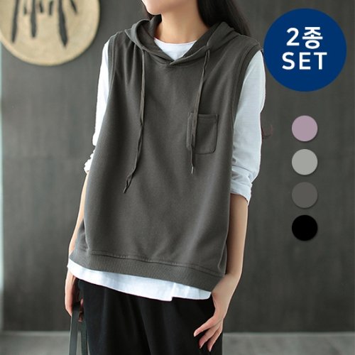 ★텐텐★[2종세트] 유니제이 베이직 후드 포켓 조끼
