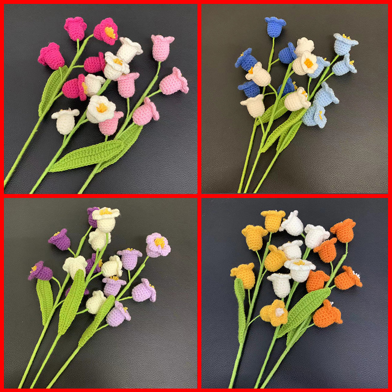 뜨개 꽃다발 완제품 수제 양모 꽃 튤립 입학식 손뜨개꽃