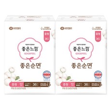 좋은느낌 좋은순면 생리대 날개형, 중형, 36개입, 2개