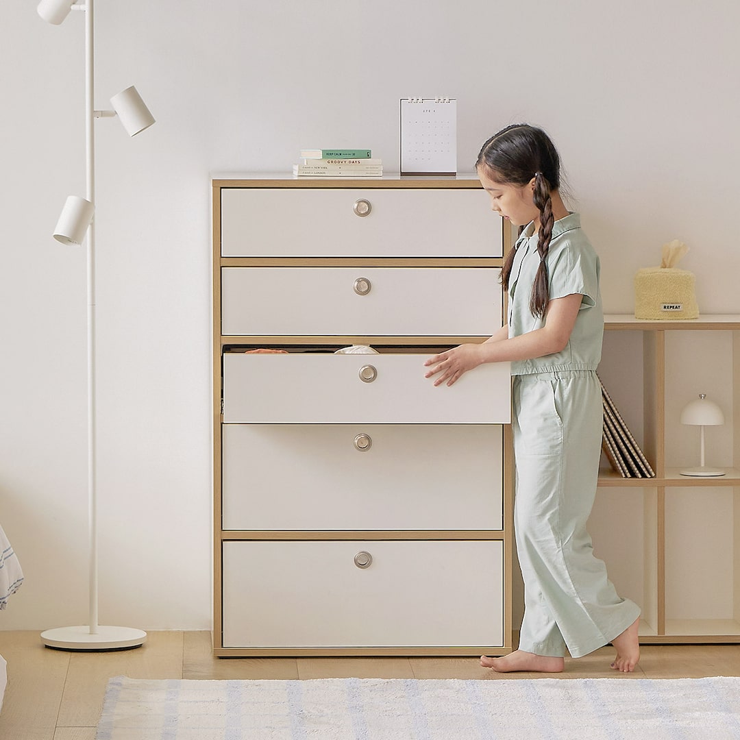 그로잉핏 5단서랍장 주니어 서랍장 크림버치