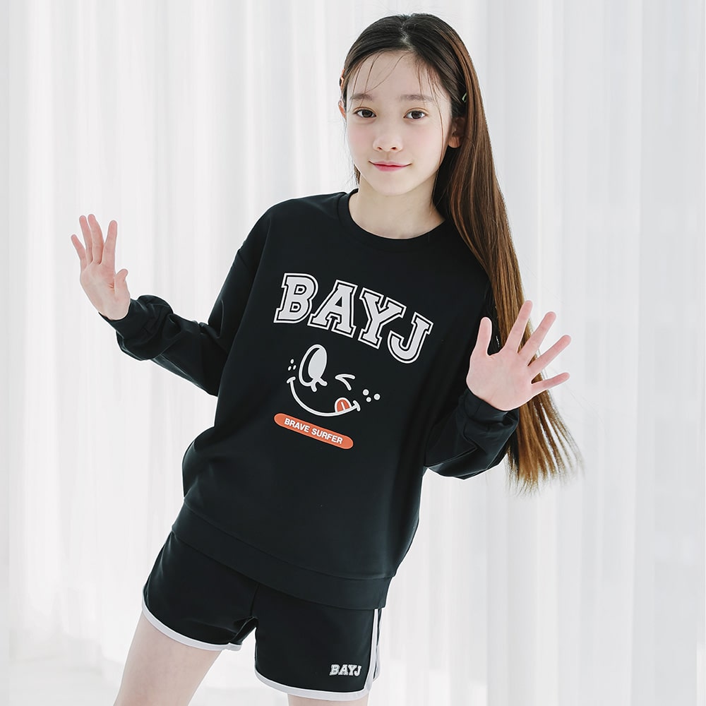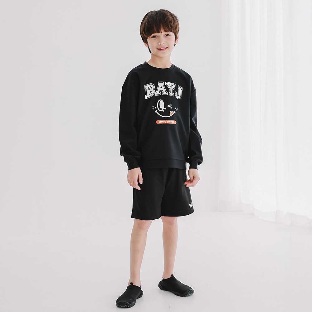 BAY-J 주니어 스마일 블랙 래쉬가드 상의+반바지 세트