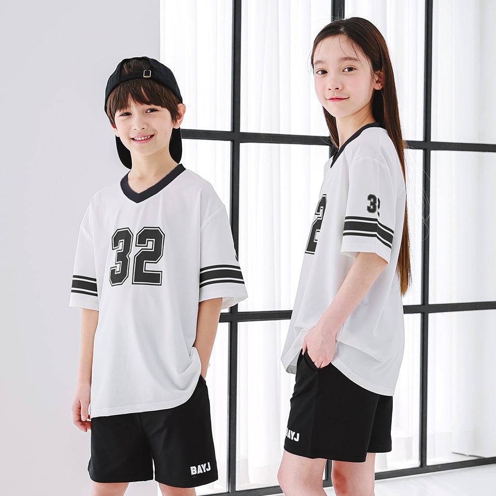 BAY-J 주니어 럭비 화이트 래쉬가드 상의+반바지 세트
