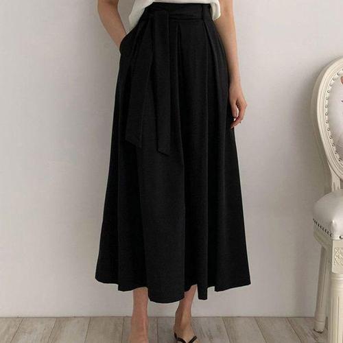 [BNX]여성 플리츠 주름 벨트 롱스커트