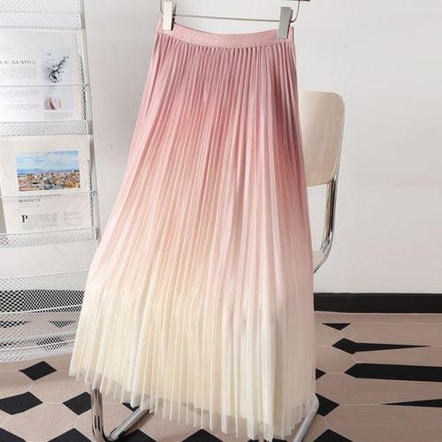 [무드수]그라데이션 플리츠 샤랄라 롱 주름 스커트