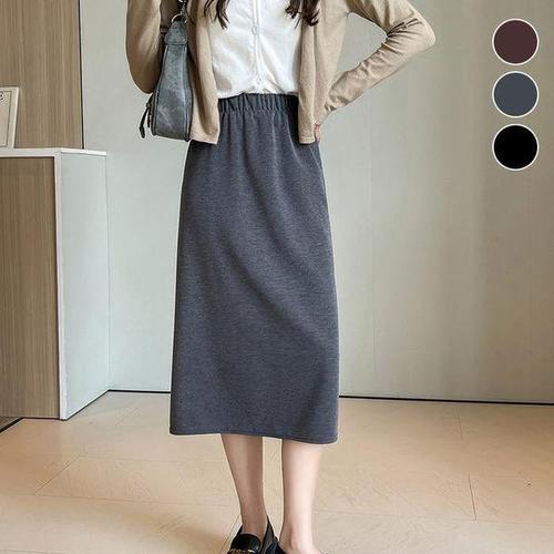 여성 면소재 주름 느낌 포인트 슬림 허리밴딩 스커트