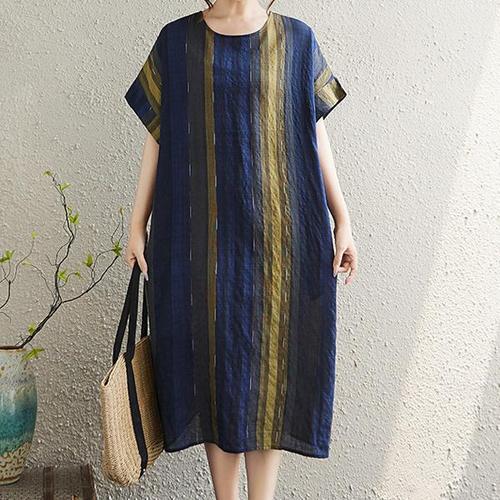 [쿠잉]스트라이프 래글런숄더 빅사이즈 중년여성 롱 원피스