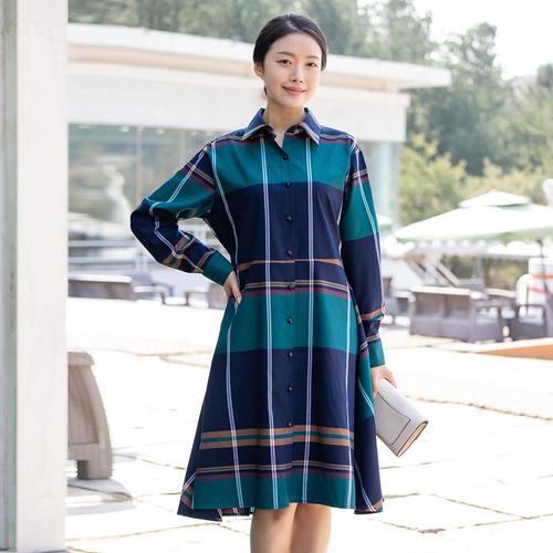 엄마옷 면체크카라 스판 오픈 원피스 OP515008 중년여성의류/60대/70대/마담/빅사이즈/할머니옷