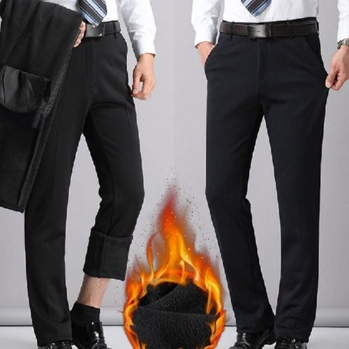 Paercute 남성 겨울 양모털 기모정장바지 중년 방한 보온 골프 활동용 지퍼 앞판 세련된 슬랙스 편안한 착용감