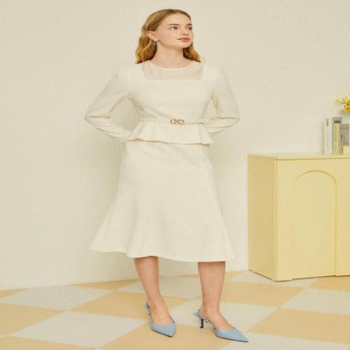 [JJ JIGOTT]JJ JIGOTT 시스루 배색 페플럼 원피스_K GN3A0OP13