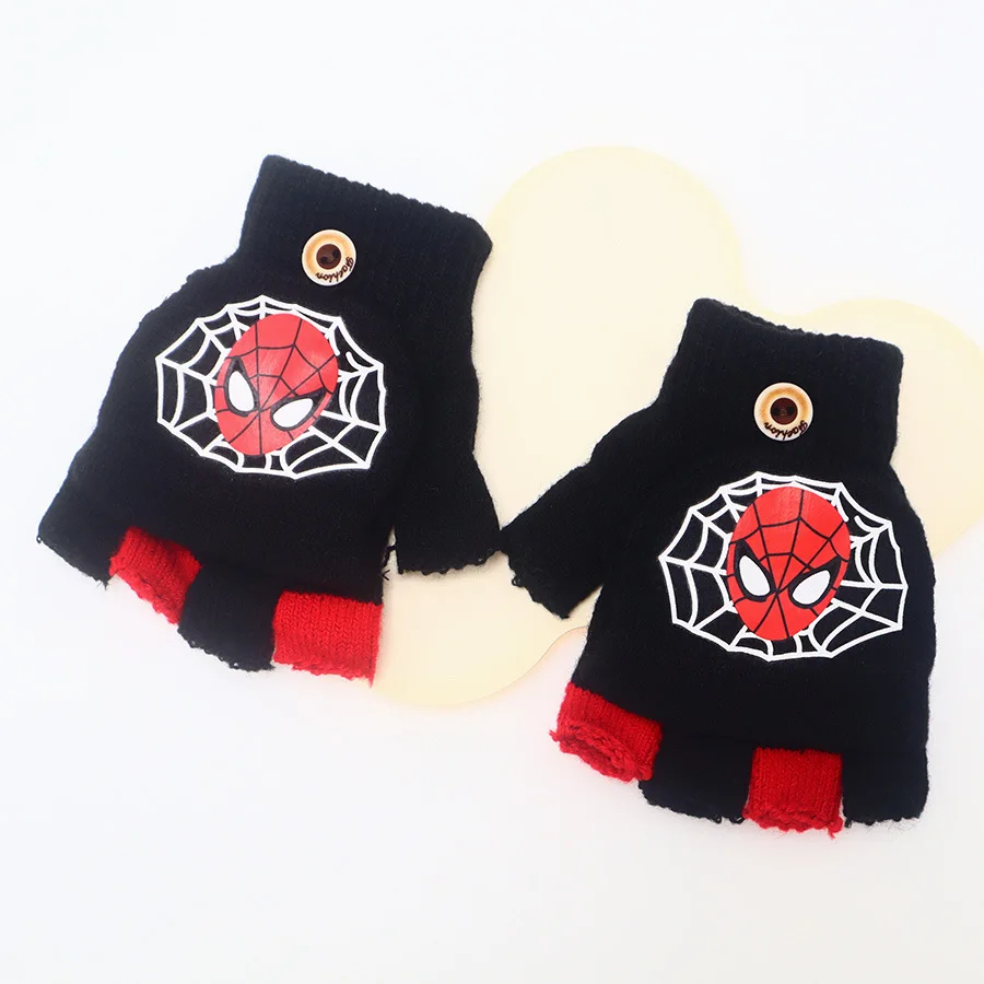 마블 스파이더맨 어린이 플립 장갑 유아용 반 손가락 장갑 유치원 플립 탑 따뜻한 장갑 2-7세 선물
