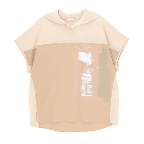 [지센]우븐 패치 후드 반팔 티셔츠 LCTSM429_BE
