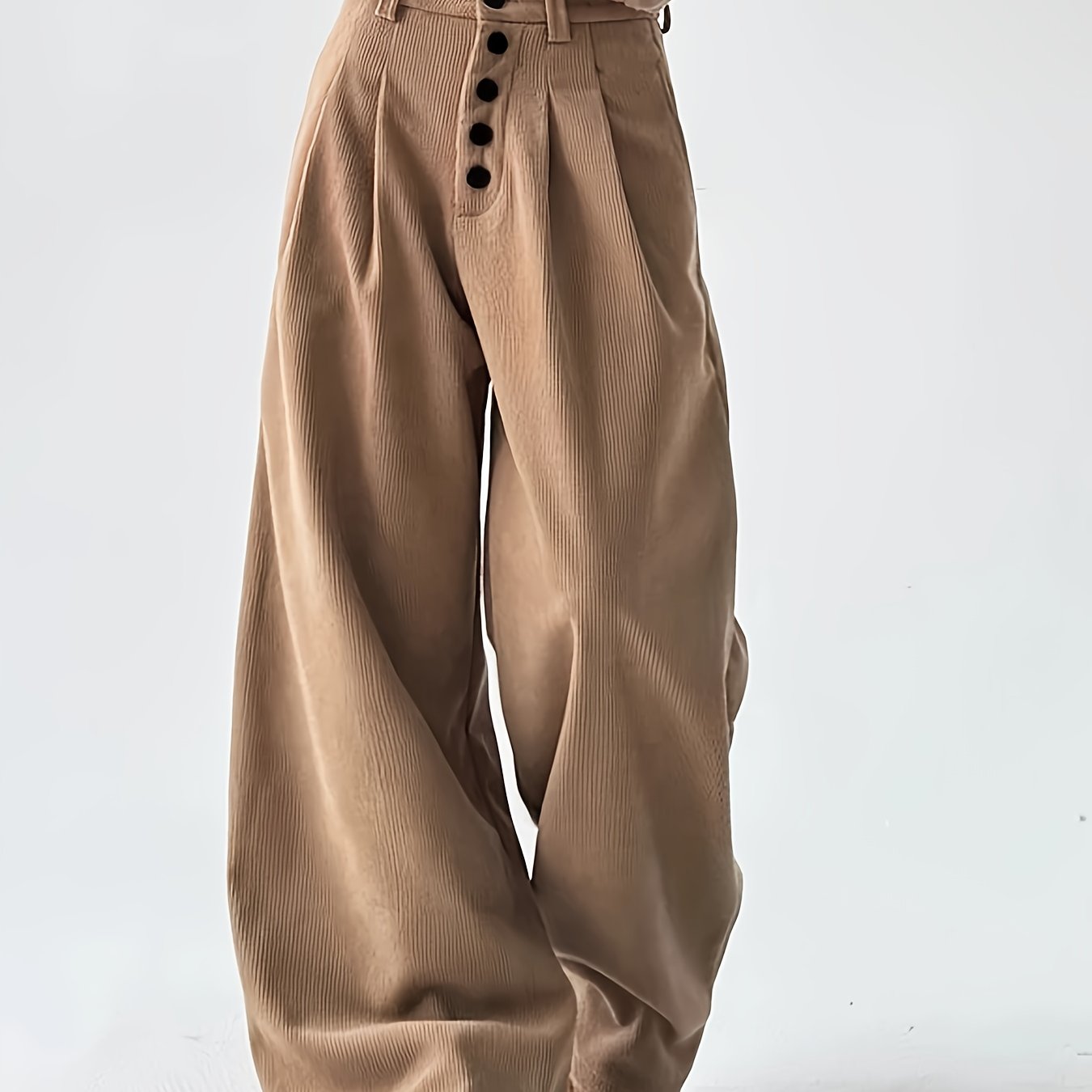 TEMU 여성용 코듀로이 와이드 팬츠 - 풀 길이 내장 지퍼 클로저, 캐주얼 엘레강스 웨어, 봄/가을 아웃핏, 루즈핏 (기계 세탁 가능) 솔리드 컬러 홈 & 커뮤트용 팬츠