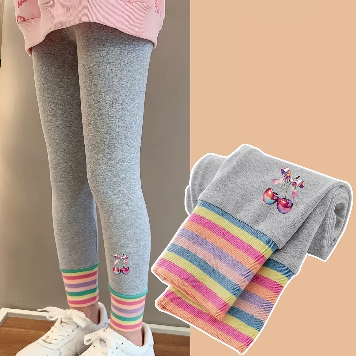 TEMU 여아용 귀여운 과일 & 채소 프린트 하이웨이스트 레깅스 - 신축성 있고 슬림핏, 회색에 컬러풀 , 봄 & 가을에 완벽, 캐주얼 착용, 하이웨이스트 레깅스, 봄 가을 의상, 장난기 있는 디자인, 편안한 핏, 라이크라 소재, 여아용 옷
